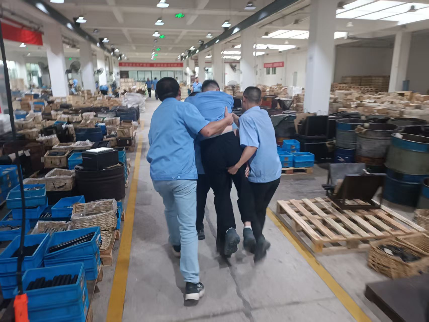 2025年6月下旬已天气逐渐进入高温模式,管理层时刻关注一线员工所处的工作环境,对此公司管理部对一线员工进行了高温中暑急救演练,给员工普及面对高温突发状况如何自救。